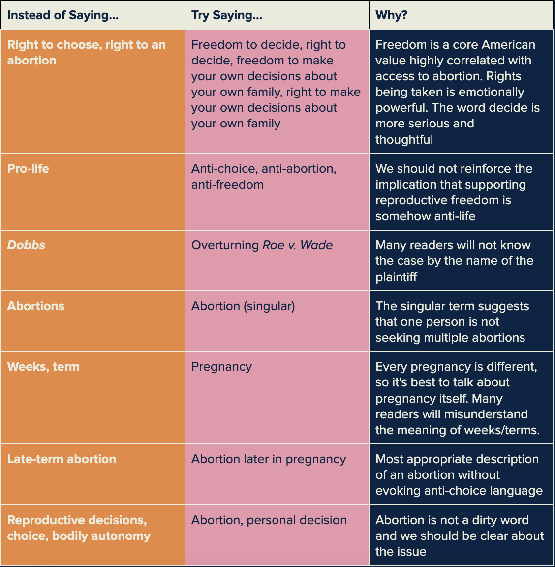 Sharing your story and what you’ve experienced since the loss of Roe. (30-45 seconds)